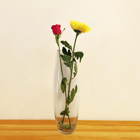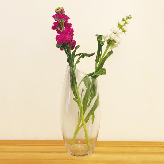Ovale, schräg geschliffene Glasvase, 40 x 12 cm